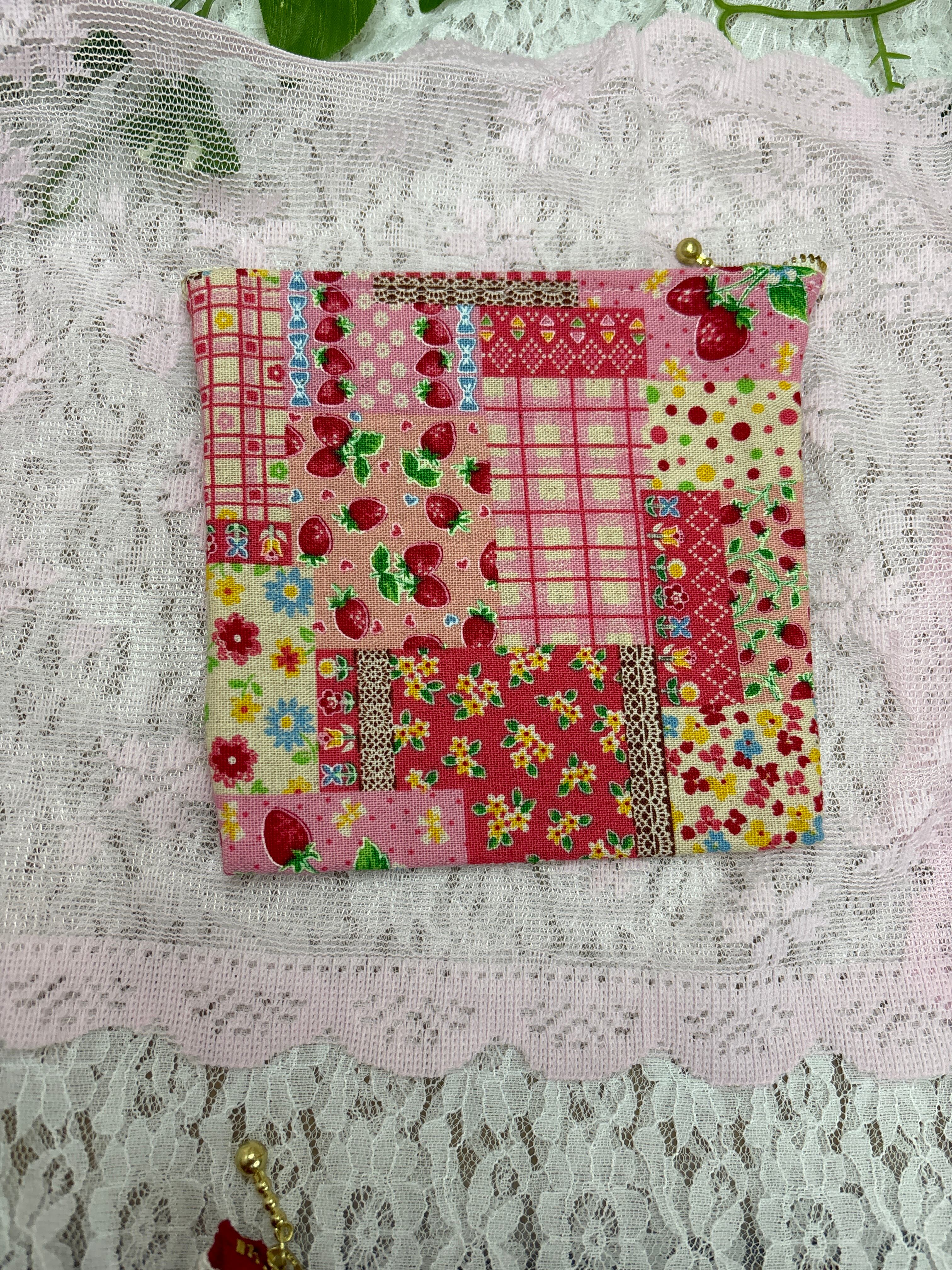 ピンクいちごのファスナーポーチ