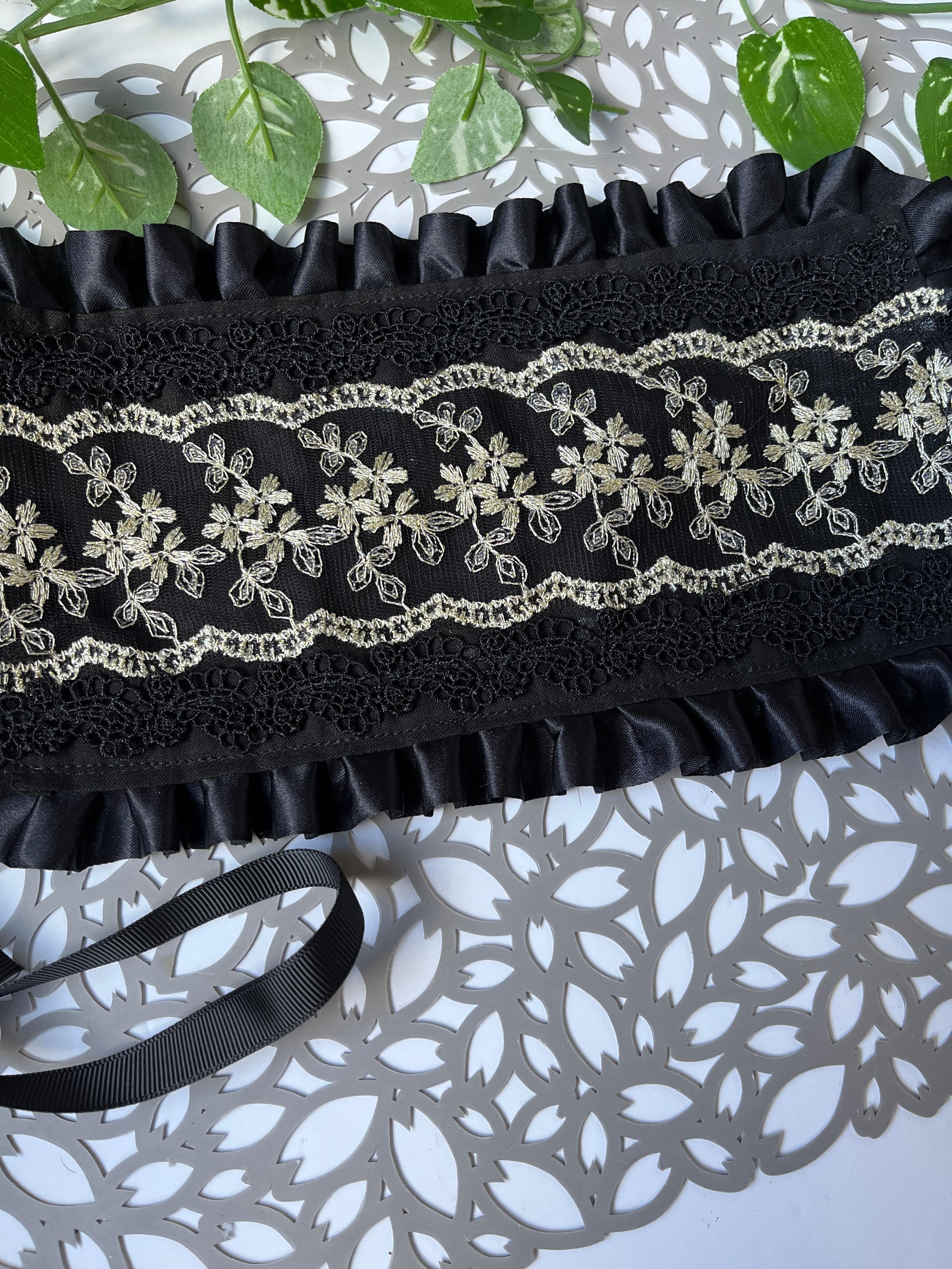 黒のゴージャスなヘッドドレスは、ゴスロリやロリータファッションにぴったりのアイテムです。エレガントなデザインと黒の色使いが特徴で、どんなコーディネートにも華やかさと個性をプラスしてくれます。