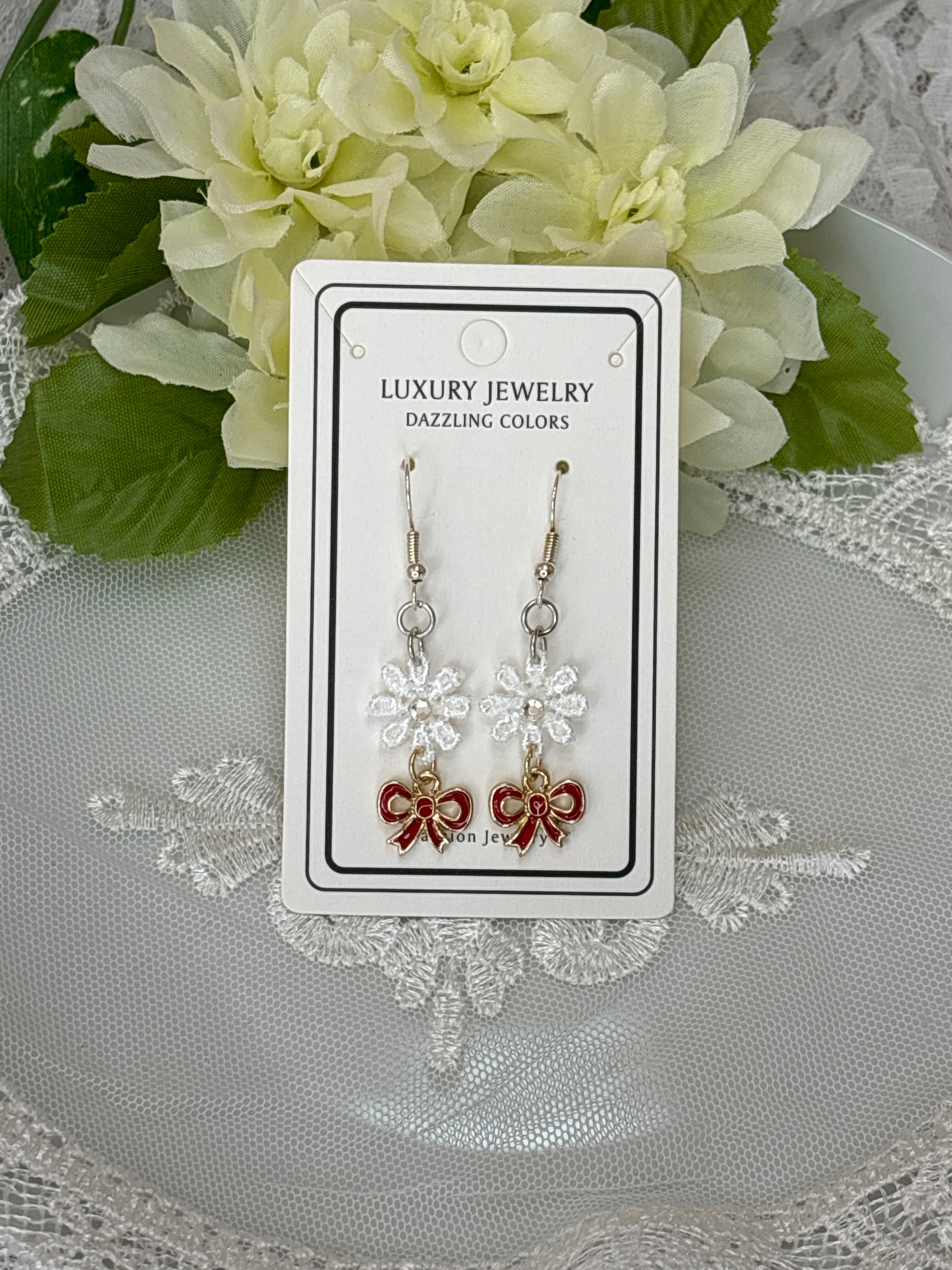 小さな赤いリボンと可憐なお花のデザインがキュートなピアスです。シンプルながらも個性的なデザインで、さりげなくおしゃれを楽しめます。重さも軽く、つけ心地も抜群ですので、長時間つけていても疲れにくい仕様となっています。