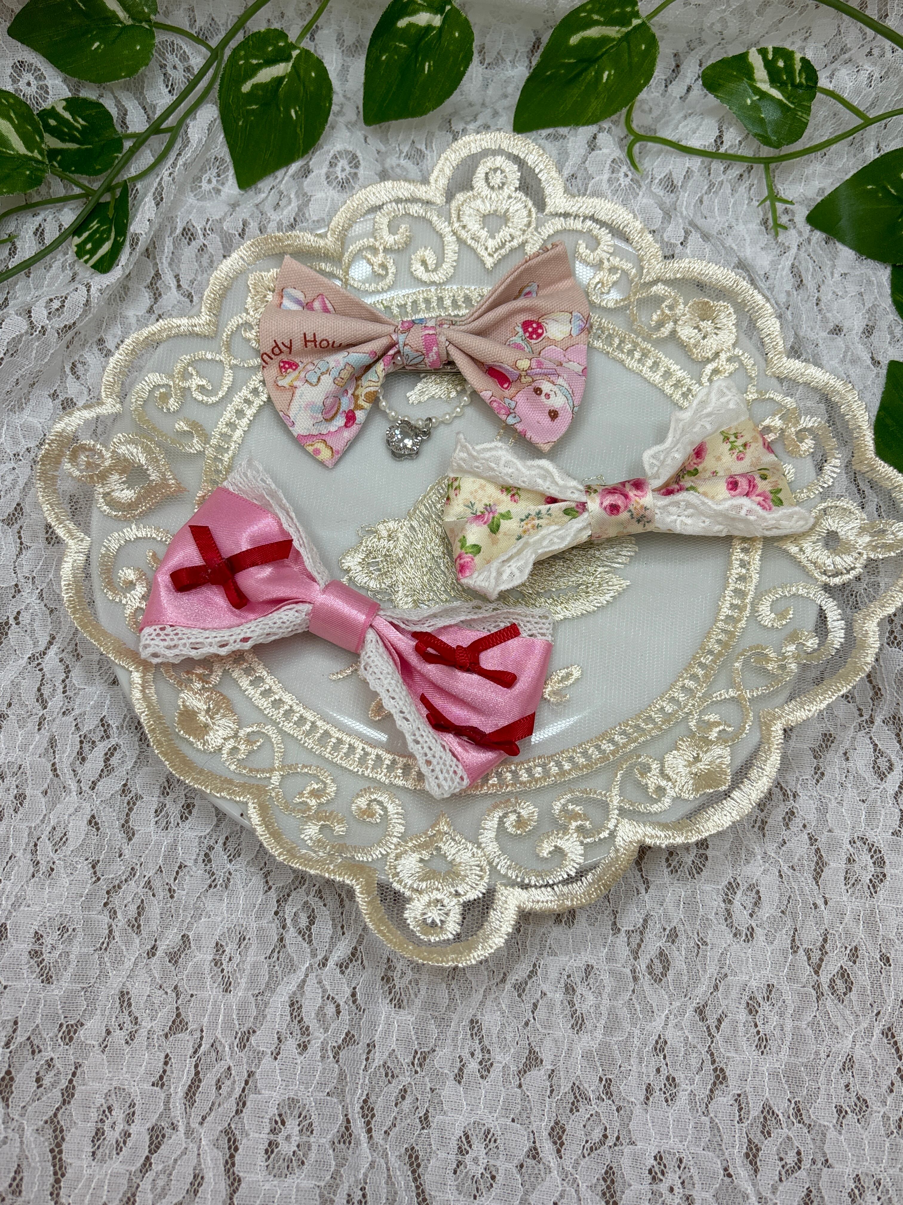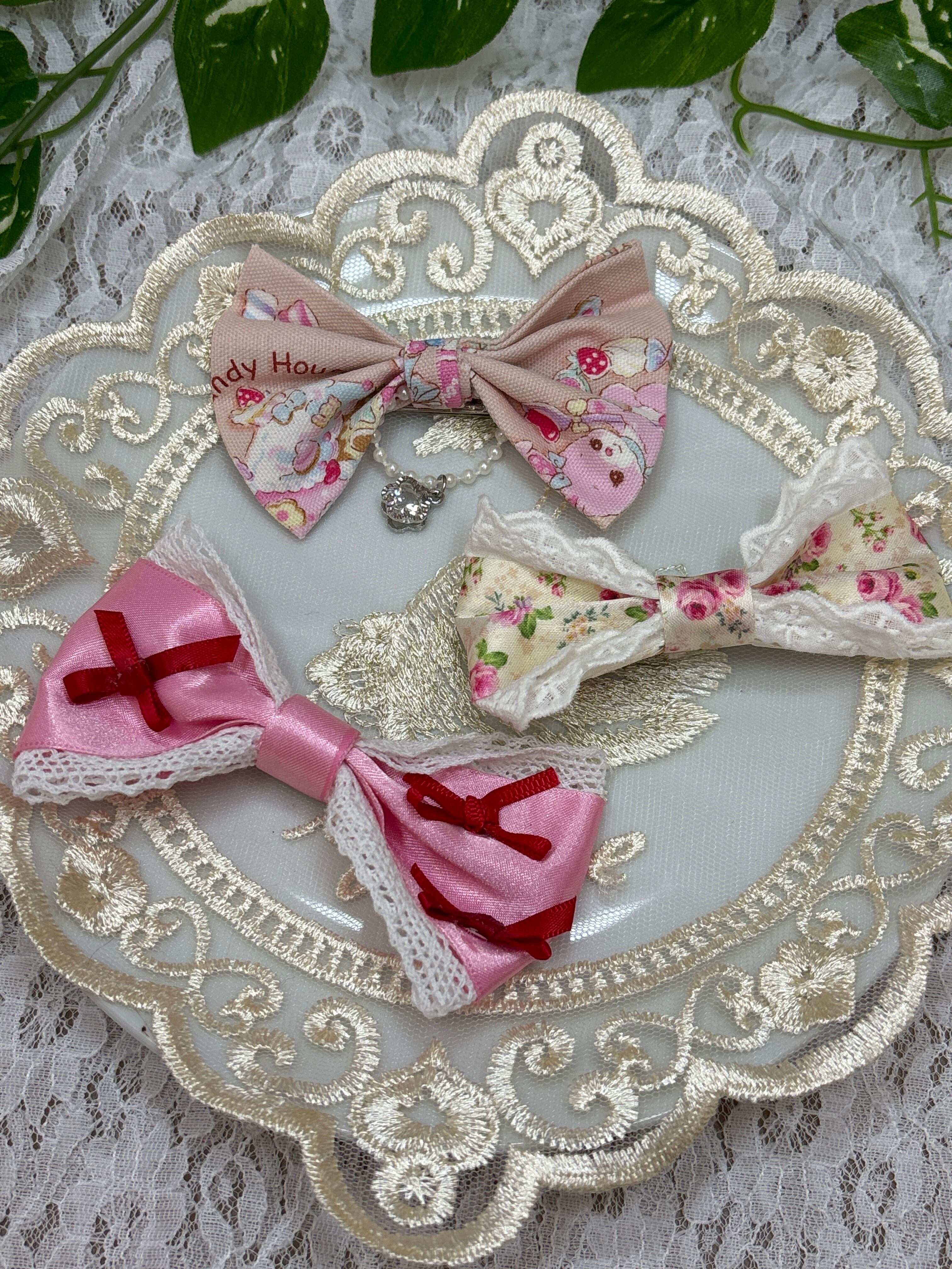 可愛らしいガーリーな雰囲気が漂う留めセットです。おさげやハーフアップなどのヘアスタイルにぴったりのデザインで、女性らしいアクセントをプラスしてくれます。バラやリボンのモチーフが施されており、普段のスタイリングをちょっと華やかに演出してくれます。